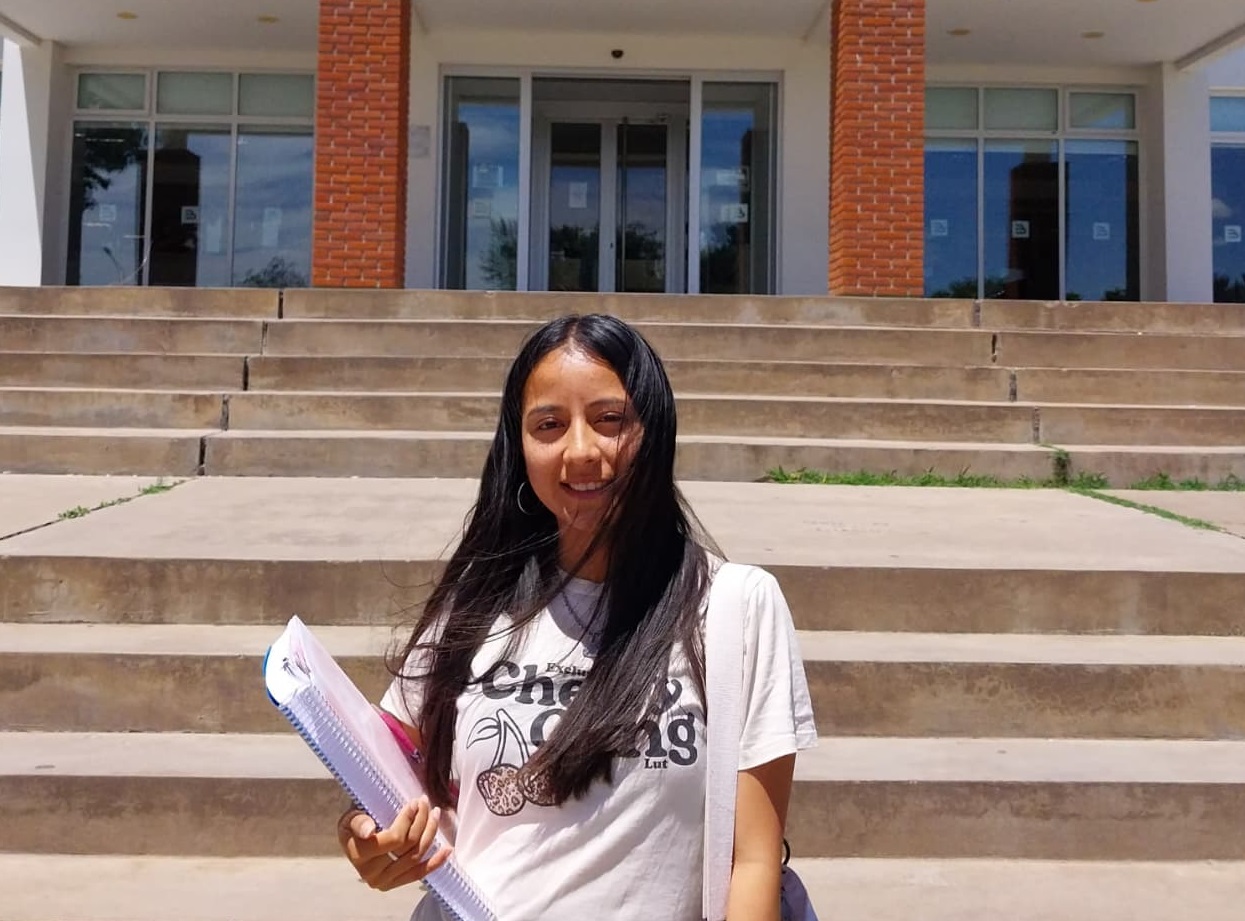 En 2019 vine a vivir con una tía salteña que residía acá. Ella vio un folleto sobre la docencia. Decía “FCH Campus”. Decidimos ir. Entramos por la parte de atrás del predio universitario. Es decir, fuimos directamente a la Facultad de Humanas. Quien me atendió me habló de la carrera y me anoté. Es muy loco, si en unas de esas hubiese entrado por otro lado, la información recibida habría sido otra y mi elección también. Pero, así se dieron las cosas, este fue mi destino. Finalmente me apasioné con las materias y voy muy bien, terminando un ciclo muy importante.