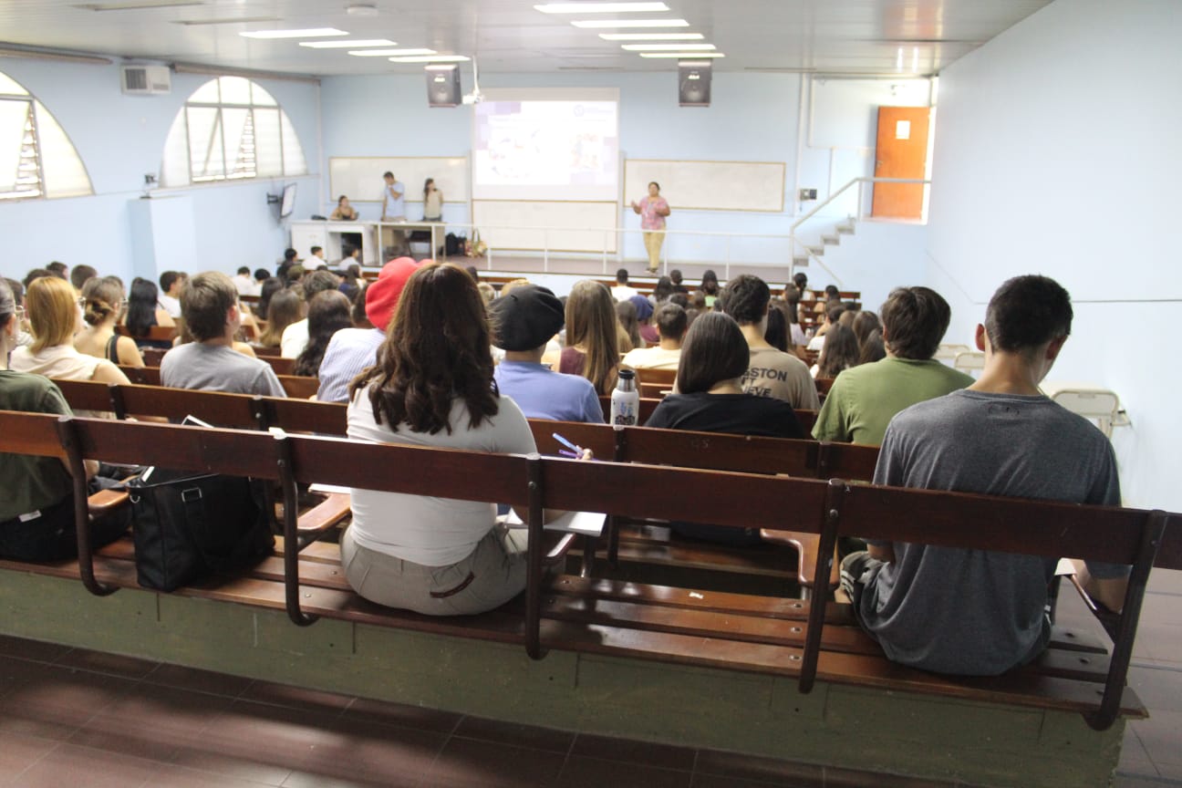 Tras la bienvenida formal del decano de la FCV, Claudio Machado, los flamantes ingresantes se dividieron en dos grupos que, en los pabellones de Anatomía y Aulas Comunes 1, tomaron contacto con los equipos docentes que lideran estas primeras clases universitarias.