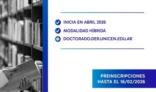 La Facultad de Derecho informa que se encuentran abiertas las preinscripciones al Doctorado Interinstitucional en Derecho – Cohorte 2026, una propuesta académica de excelencia, acreditada por la Comisión Nacional de Evaluación y Acreditación Universitaria (CONEAU).