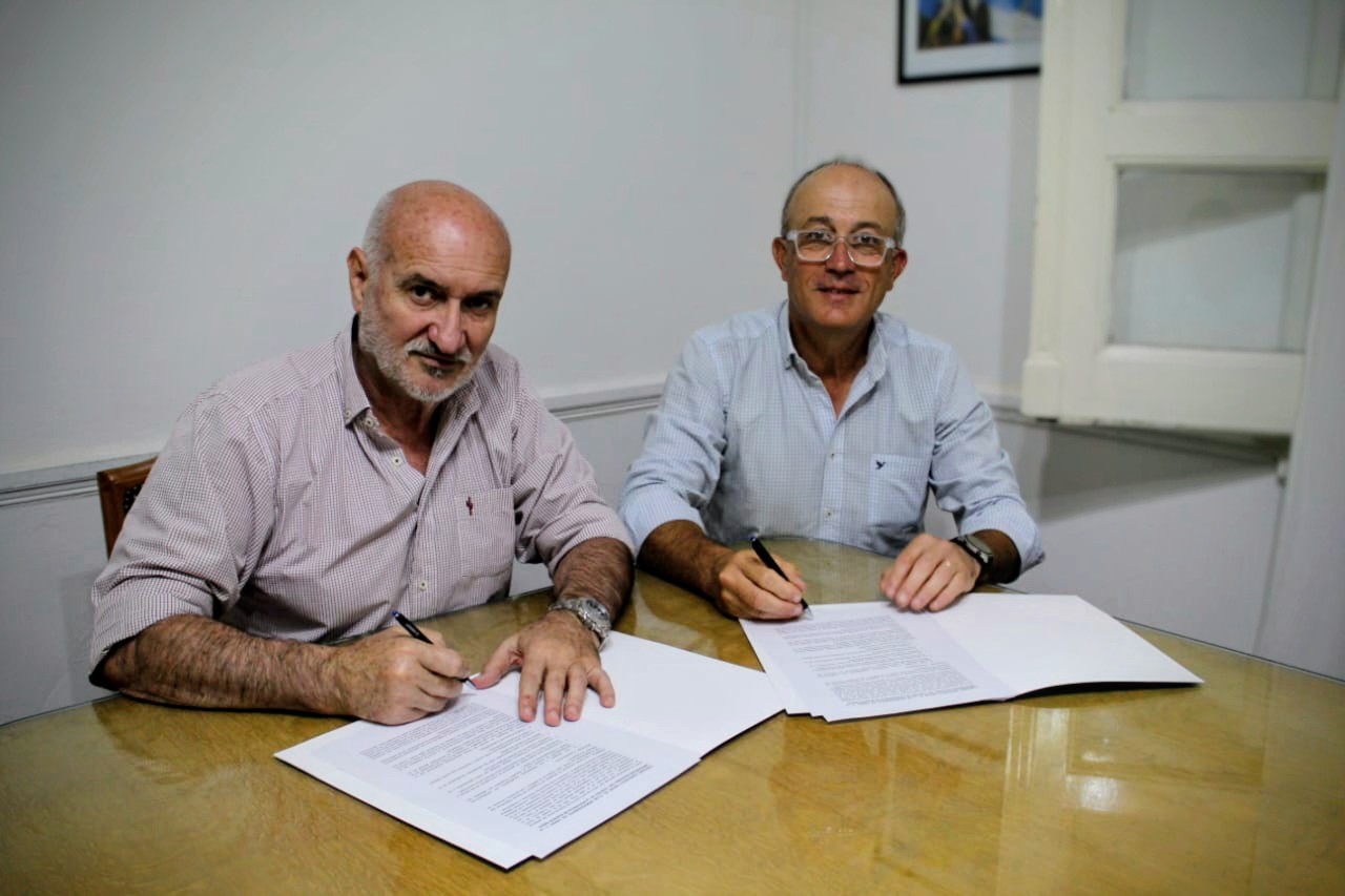El rector de UNICEN Marcelo Aba y el presidente de Club Independiente de Tandil firmaron un acuerdo, en el marco de un encuentro concretado en el Rectorado de la Universidad.
