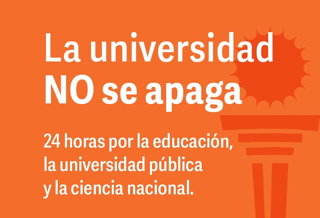 El sistema universitario público argentino llevará adelante una jornada nacional bajo la consigna "La universidad no se apaga", que se desarrollará desde las 8 horas del miércoles 15 de abril hasta las 8 horas del jueves 16 en todo el país.