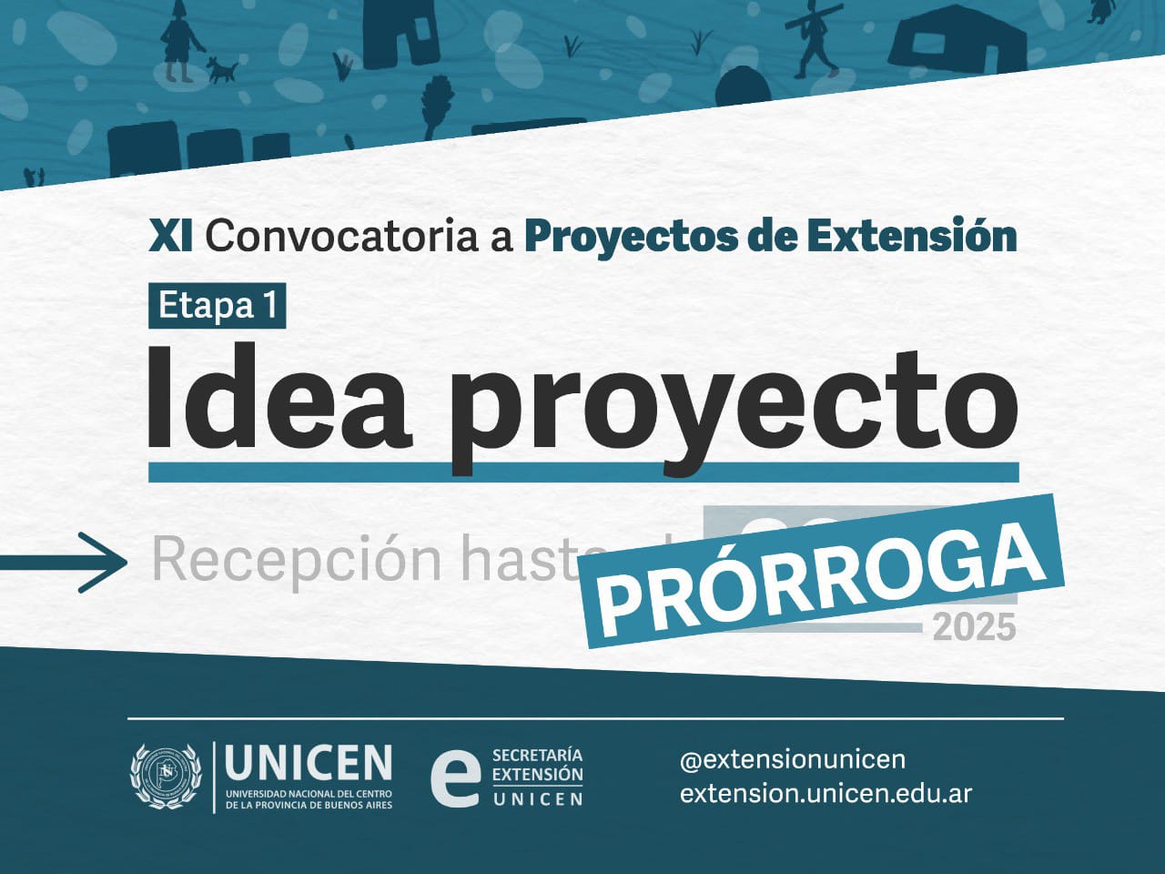 La Secretaría de Extensión de la UNICEN informa que se prorroga hasta el viernes 5 de diciembre inclusive el plazo para la presentación de ideas-proyecto de la XI Convocatoria a Proyectos de Extensión. Las bases y condiciones se encuentran disponibles en el sitio web.