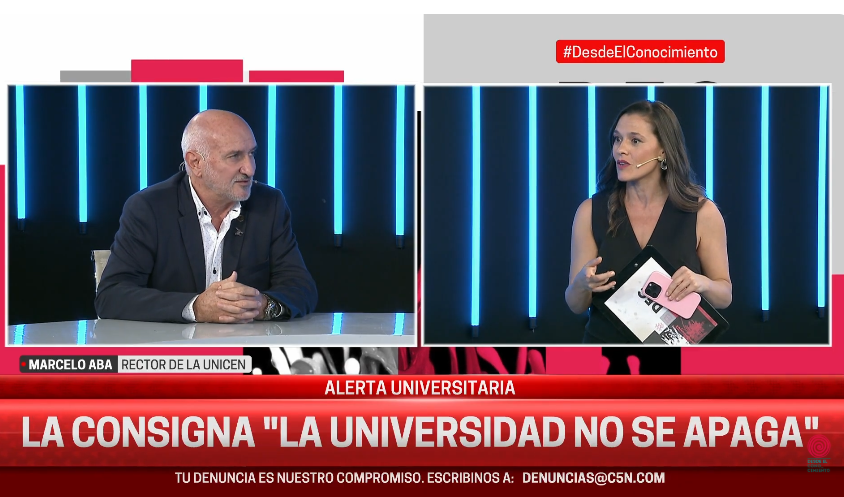 El canal televisivo C5N entrevistó a Marcelo Aba, Rector de la UNICEN (Universidad Nacional del Centro de la Provincia de Buenos Aires), después de la Jornada de 24 hs de las Universidades para que se cumpla la Ley de Financiamiento.