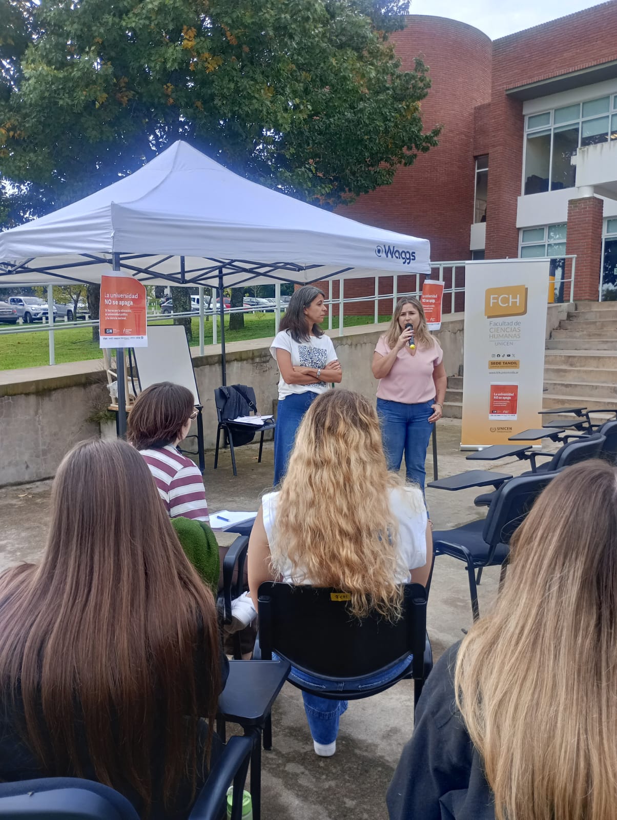 - Intervenciones en las aulas de las clases que se dicten en el pabellón de la Facultad y en otros espacios, por parte de equipos de extensión y de investigación socializando sus proyectos.