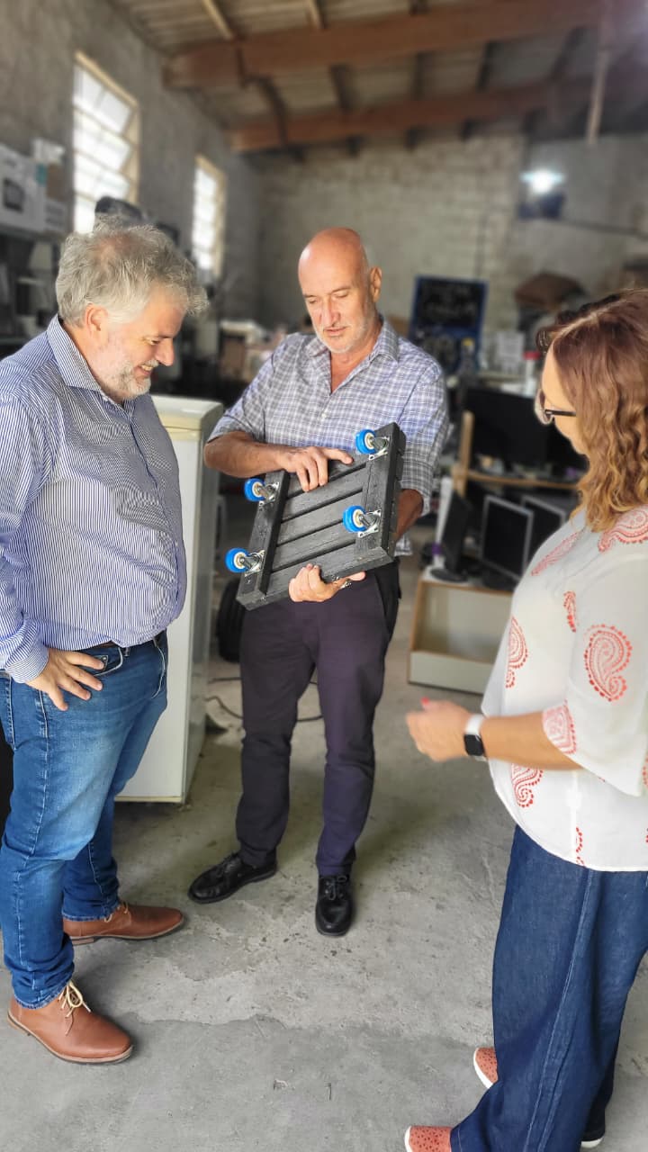 El rector Marcelo Aba, la vicerrectora Alicia Spinello, y el Subsecretario de Transferencia Diego Dalponte visitaron la Cooperativa para la Revalorización de Aparatos Eléctricos y Electrónicos (CooPRAEE), iniciativa con origen en la Universidad que tiene un destacado desempeño en la reutilización de tecnología.
